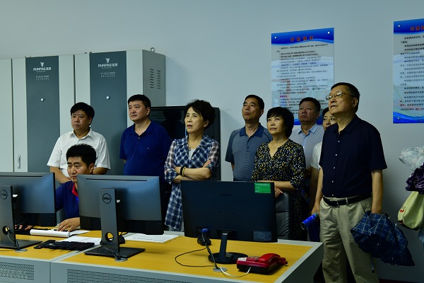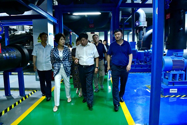 李冬玉首先參觀了中水廠,沿路了解了新能源供熱供冷原理、管道線路鋪設(shè)。接著在能源站內(nèi),聽取了公司工作人員對沙盤的講解,再深入能源站地下機(jī)房,對設(shè)備間和配電室的運(yùn)行情況進(jìn)行了解,并在智能化控制室觀看了解BIM能源管理系統(tǒng)流程圖,聽取運(yùn)行工作人員講解系統(tǒng)運(yùn)行情況。李冬玉副主席現(xiàn)場對目前供冷階段的運(yùn)行情況及用戶反饋提出疑問,工作人員進(jìn)行詳細(xì)解答。