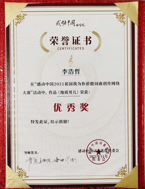 集團一地勘主題音樂作品在感動中國2021原創(chuàng)詞曲大賽中獲獎